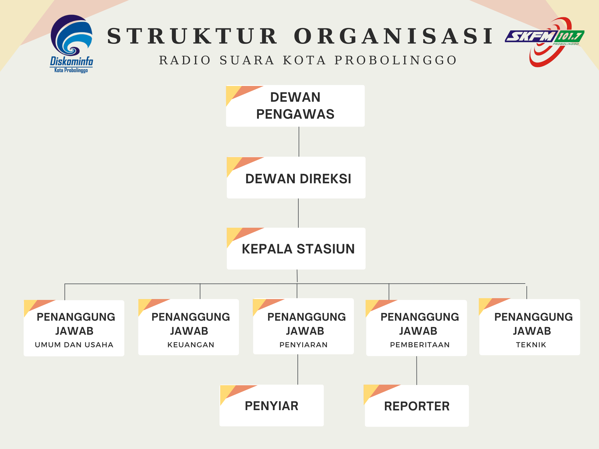 Struktur suara kota probolinggo terdiri dari bagian pengelolaan, bagian produksi dan staf pendukung. Bagian pengelolaan ini terdiri dari manajer stasiun, direktur stasiun dan lain-lain, untuk bagian produksi ini terdiri dari produser radio, teknis dan lain-lain, bagian staf pendukung ini terdiri dari administrasi stasiun, pemasaran dan promosi serta staf ahli dalam bidang teknologi informasi.